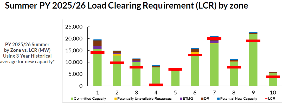 You notice the LCR - Local Clearing Requirement is more restrictive than the PRMR - Planning Reserve Margin Requirement.