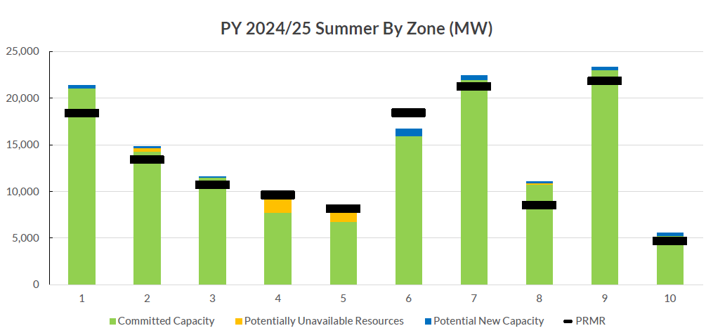 Notice it is PRMR—that’s the black line. Most zones have enough capacity (the black line is consistently lower than the green bar) except for Zones 4, 5, and 6.